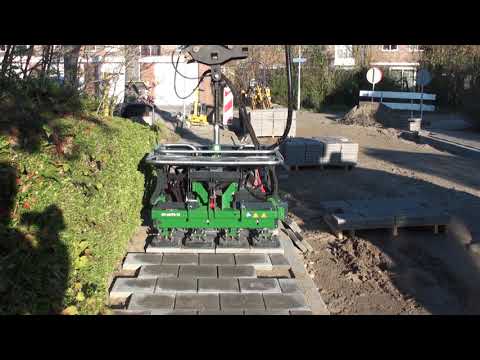 Tegels uitnemen, schoonschuiven en opstapelen voor hergebruik. Of nieuwe tegels leggen, 12 tegels per laag.